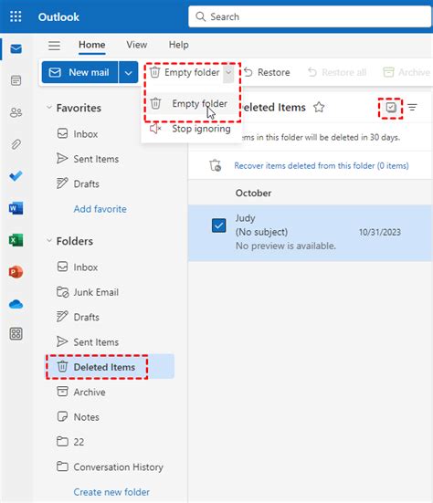 cannot empty deleted items folder in outlook web