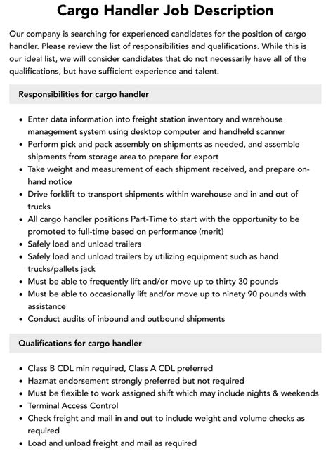 cargo job description. There are any references about cargo job description in here. you can look below.