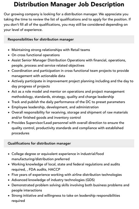 distribution manager job description. There are any references about distribution manager job description in here. you can look below.