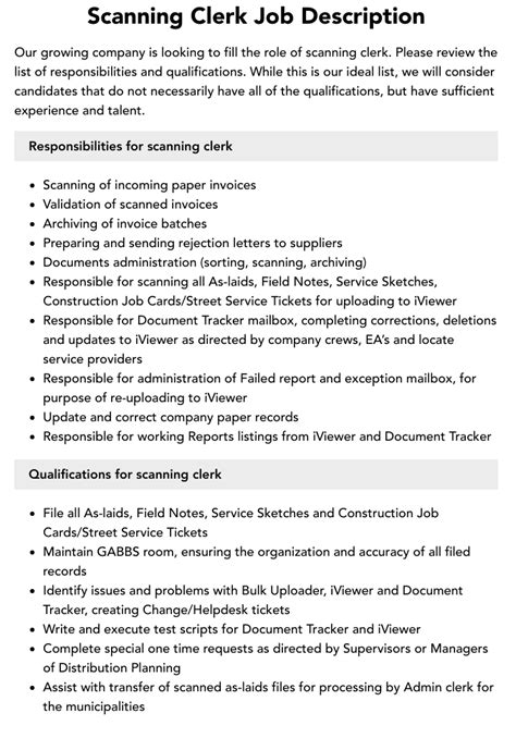 document scanning clerk job description. There are any references about document scanning clerk job description in here. you can look below.