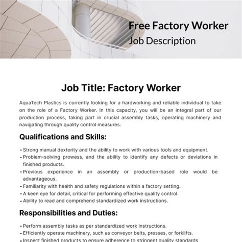 factory worker responsibilities. There are any references about factory worker responsibilities in here. you can look below.