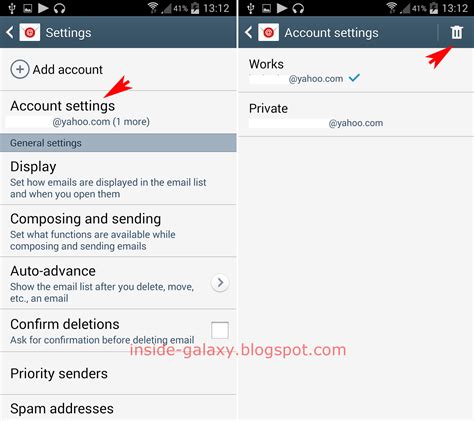how delete email account in android phone