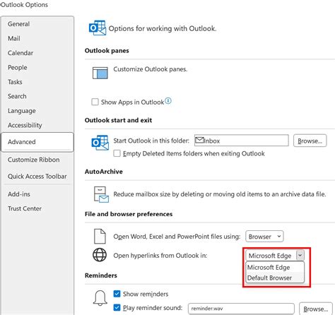 how to change default browser in outlook 2016