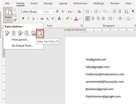 how to copy and paste email addresses from word to outlook
