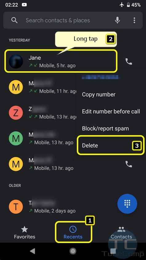 how to delete recent calls on an android phone