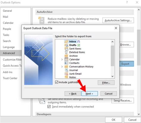 how to export email folder in outlook