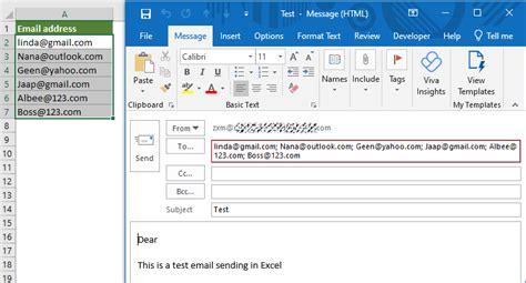 how to send an email to a list of email addresses in excel