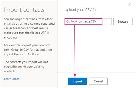 import contacts from csv in outlook