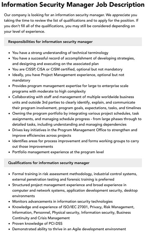 information security manager job description. There are any references about information security manager job description in here. you can look below.