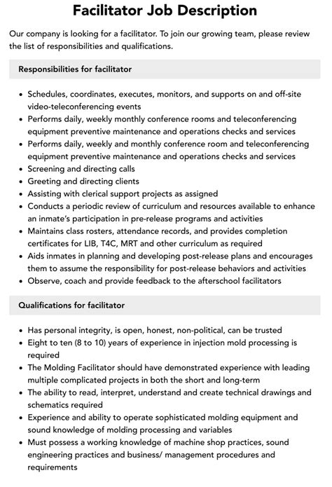 learning facilitator job description. There are any references about learning facilitator job description in here. you can look below.