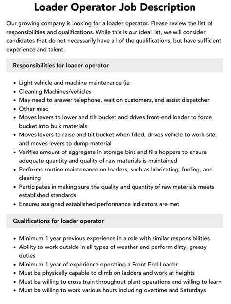 loader operator job duties. There are any references about loader operator job duties in here. you can look below.