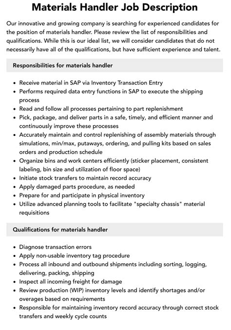 material handler 3 job description. There are any references about material handler 3 job description in here. you can look below.
