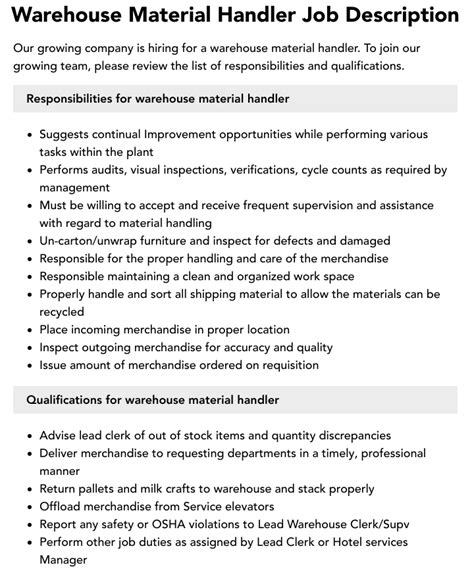 material handler job description. There are any references about material handler job description in here. you can look below.