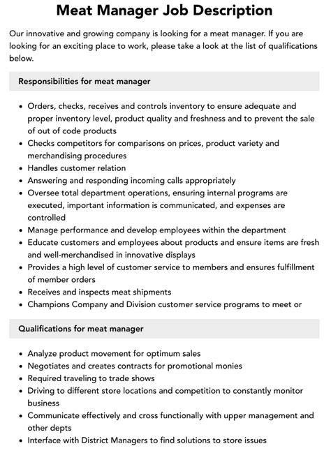 meat manager duties. There are any references about meat manager duties in here. you can look below.