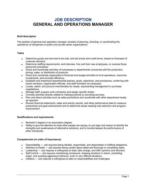 operations general manager responsibilities. There are any references about operations general manager responsibilities in here. you can look below.