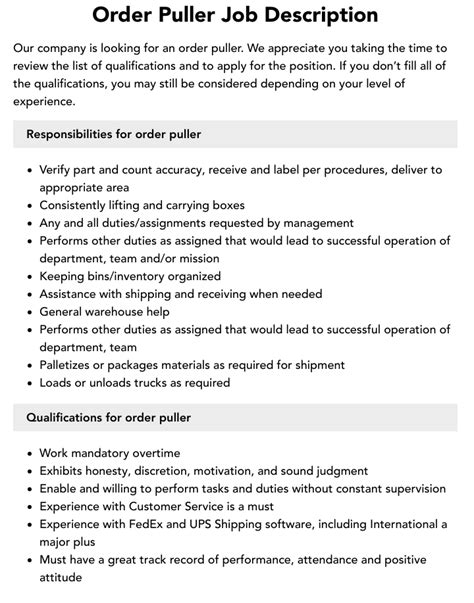order puller job description. There are any references about order puller job description in here. you can look below.
