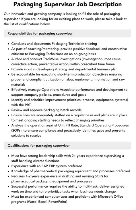 packing supervisor job description. There are any references about packing supervisor job description in here. you can look below.