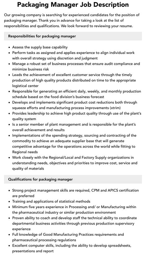 pharmaceutical packaging manager job description. There are any references about pharmaceutical packaging manager job description in here. you can look below.