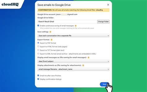 save emails to google drive by cloudhq