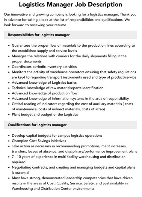 sr logistics manager job description. There are any references about sr logistics manager job description in here. you can look below.