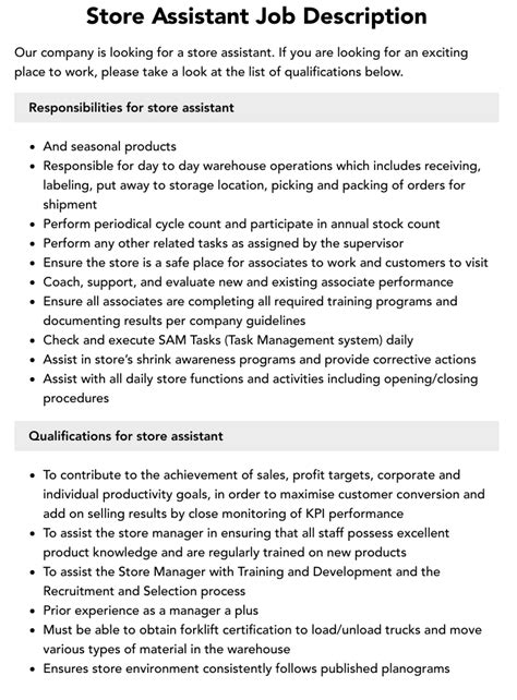 store assistant job description. There are any references about store assistant job description in here. you can look below.