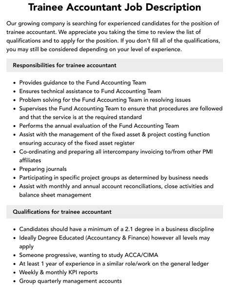 trainee accountant responsibilities. There are any references about trainee accountant responsibilities in here. you can look below.