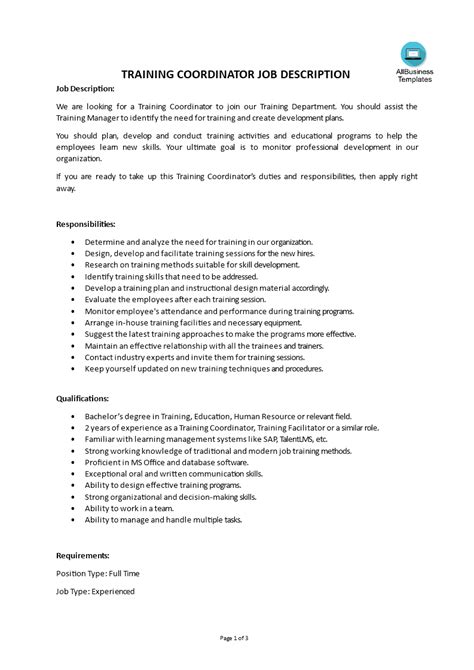 training coordinator job description. There are any references about training coordinator job description in here. you can look below.