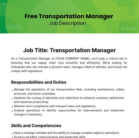 transportation manager job description sample