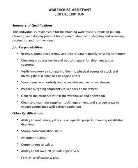 warehouse assistant job description. There are any references about warehouse assistant job description in here. you can look below.