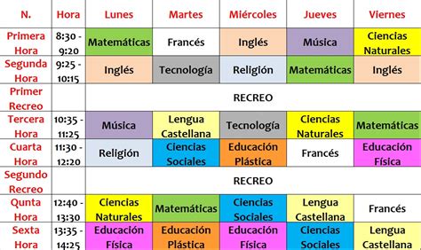 what is class schedule in spanish