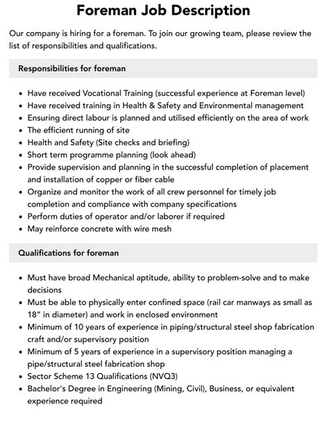 workshop foreman job description. There are any references about workshop foreman job description in here. you can look below.
